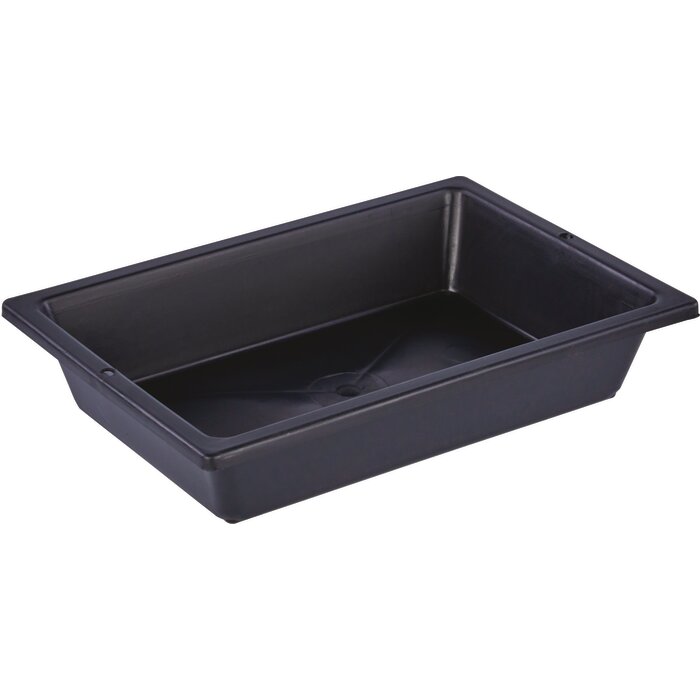 Cette auge rectangulaire de 40 litres en plastique recyclé et recyclable de couleur noire possède des poignées de transport.